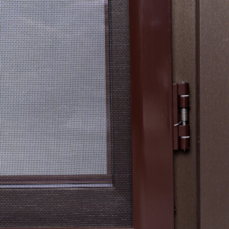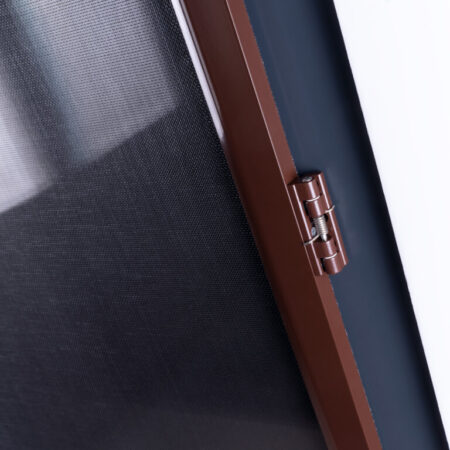 Dveřní síť proti hmyzu se připevňuje k rámu dveří pomocí tří závěsů a dvou magnetických zámků (umístěných na protilehlé straně).